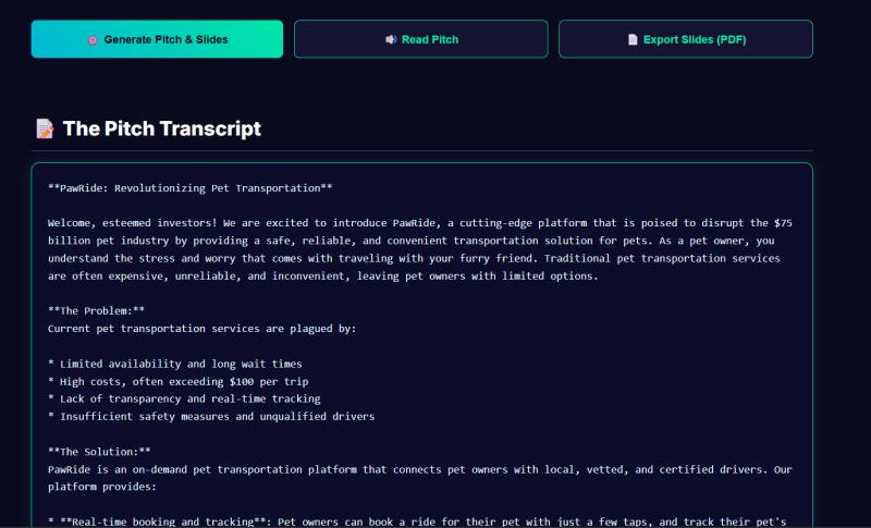 This AI-powered tool instantly transforms a simple business idea into a professional pitch deck and speech. It uses agentic logic to customize the tone and content specifically for your target audience, such as VCs or the general public.